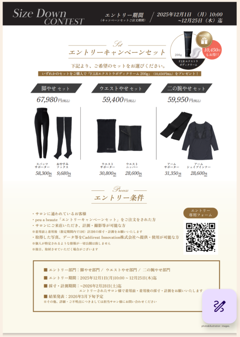 エントリーされたサロン様で着用前・着用後の採寸・計測をお願いいたします