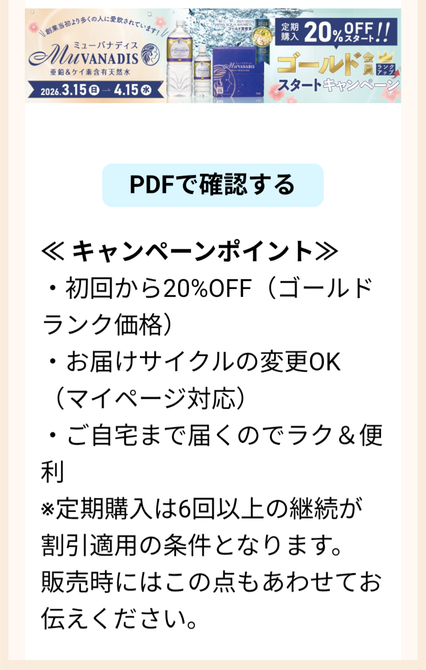 ミューバナディスの定期購入ゴールド20%OFFスタートキャンペーンが始まっておりました。